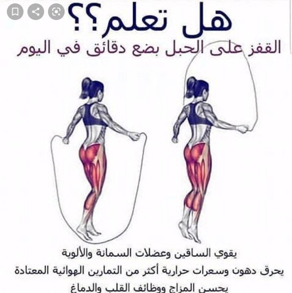 رياضة قفز الحبل: هذه الرياضة مفيده جدا القدمين ،والدوره الدمويه واللياقه،كما تساعد على حرق الدهون ،وتسهيل الهضم
